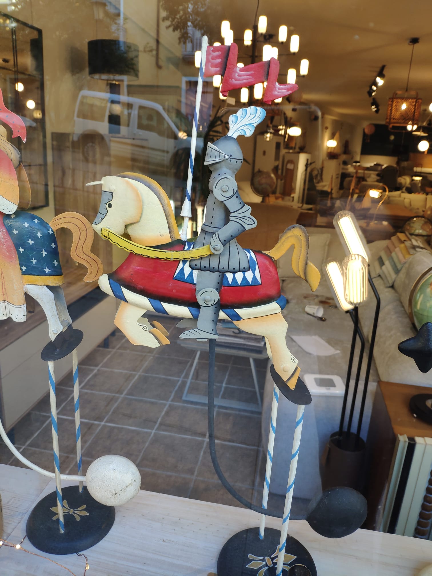 Fabricados en metal y acabados a mano, estos balancines destacan por su estética envejecida que imita las piezas tradicionales de colección. Su mecanismo permite un suave movimiento oscilante, creando un efecto visual atractivo que da vida a la figura.
