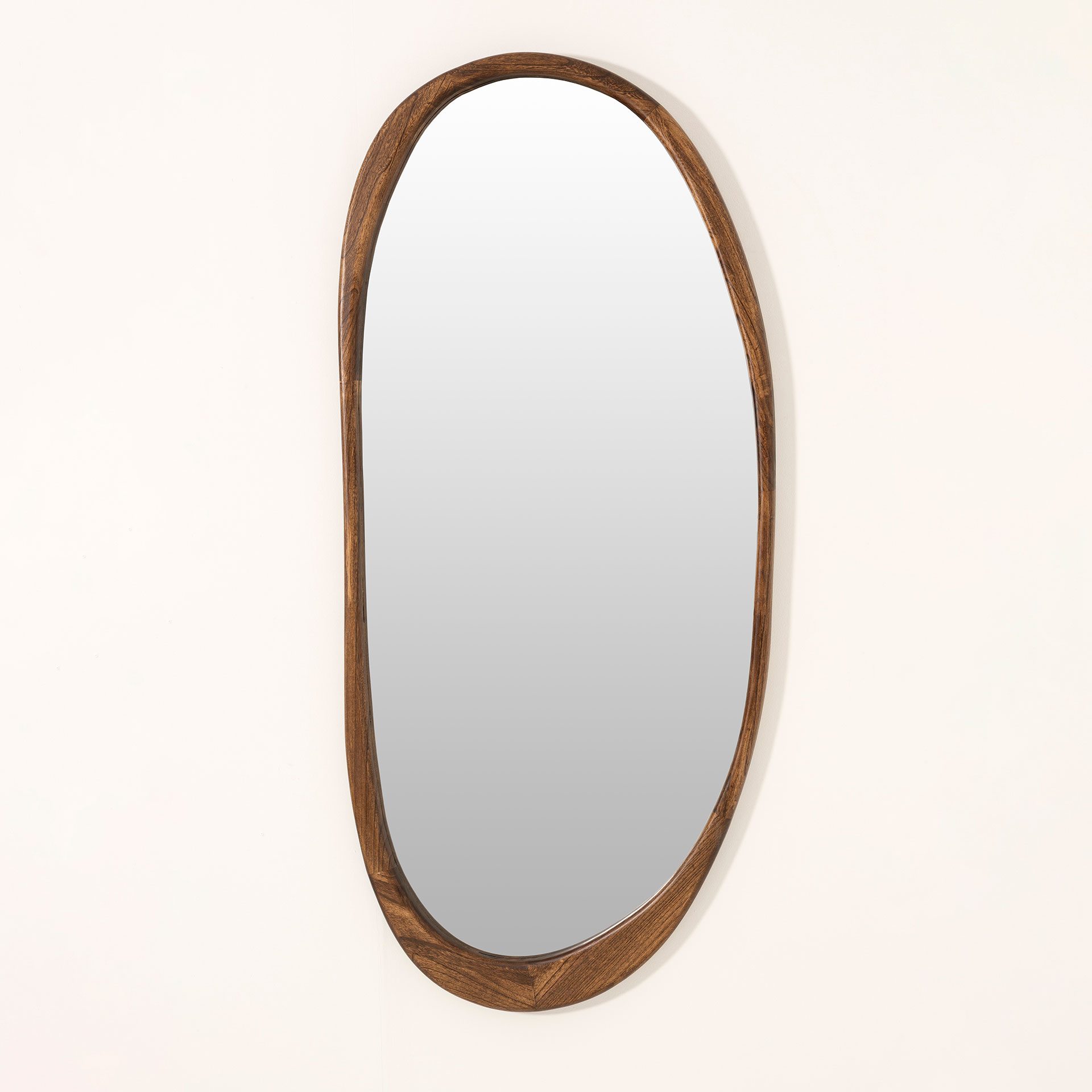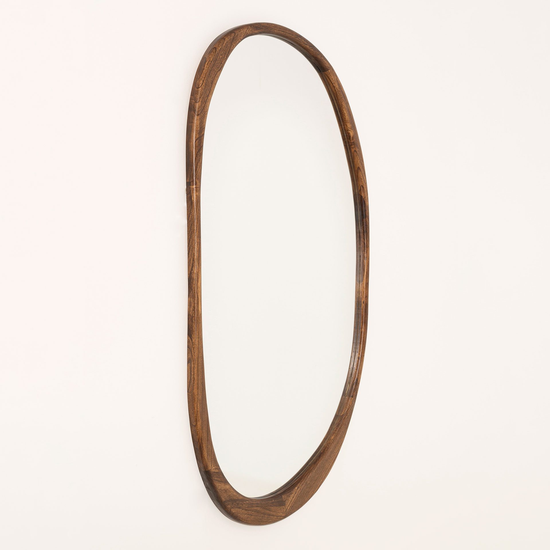 Este espejo de diseño irregular en roble no solo cumple una función práctica, sino que se convierte en un elemento decorativo protagonista, perfecto para quienes buscan una pieza única con estilo contemporáneo y acabado natural.