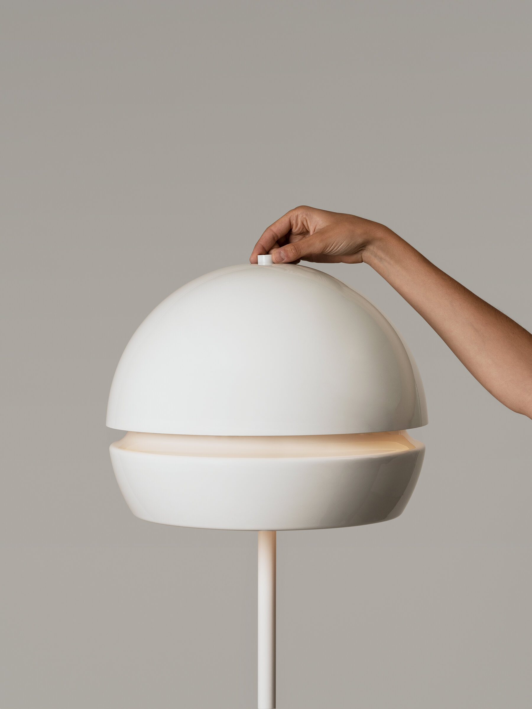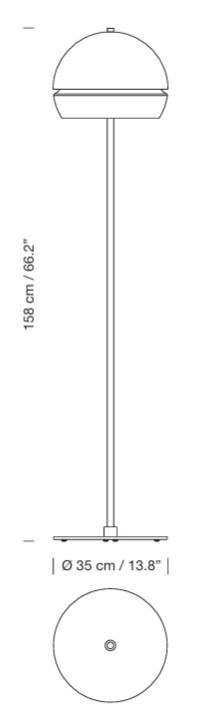 La Lámpara Fontana Alta, diseñada por André Ricard, rinde homenaje al artista Lucio Fontana y su revolución en la tridimensionalidad del arte. Manteniendo la icónica media esfera de pantalla y la iluminación periférica que genera su rasgadura, esta versión de pie amplía la familia Fontana más de cinco décadas después de su creación.