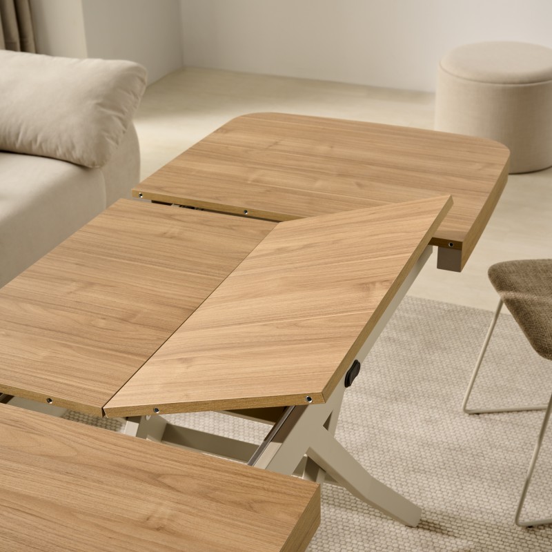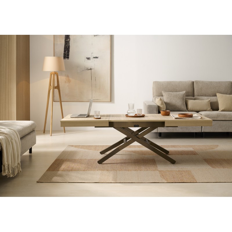 Esta mesa de centro elevable y extensible es una de las opciones más prácticas, versátiles y económicas del mercado. Diseñada para adaptarse a cualquier estilo de vida, permite transformar tu salón en segundos gracias a su sistema eléctrico de elevación y extensión, ideal tanto para el día a día como para reuniones especiales.