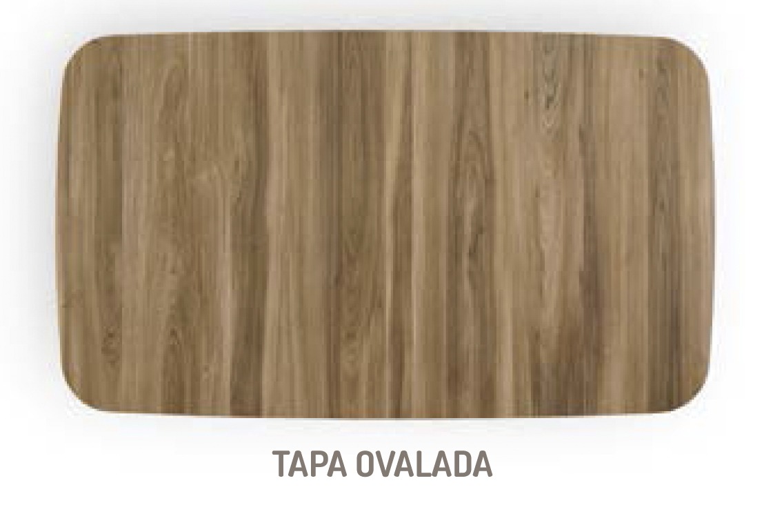 La tapa está fabricada en melamina de alta calidad, disponible con canto redondeado o canto recto, mientras que las patas metálicas lacadas se ofrecen en varios colores para adaptarse a cualquier ambiente decorativo. Su diseño actual combina estética y funcionalidad a un precio muy competitivo.