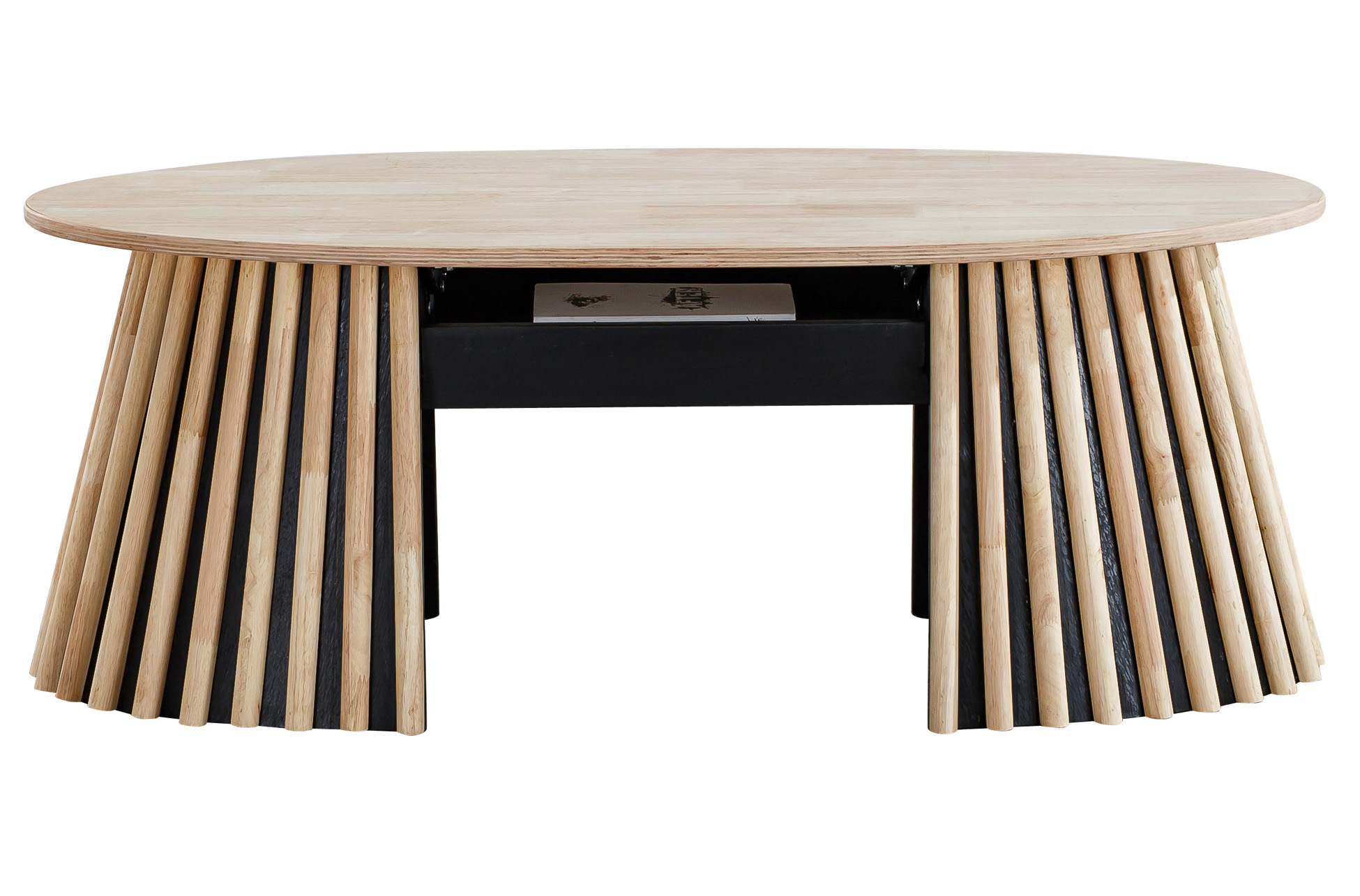 La Mesa de Centro Elevable Nordish 120 × 60 cm destaca por su diseño estilizado y su funcionalidad pensada para el día a día. Su forma ovalada, elegante y suave, aporta armonía visual al salón mientras optimiza el espacio disponible. Fabricada en madera maciza con chapa de roble, ofrece un acabado cálido y duradero que se integra fácilmente en ambientes nórdicos, modernos o contemporáneos.
