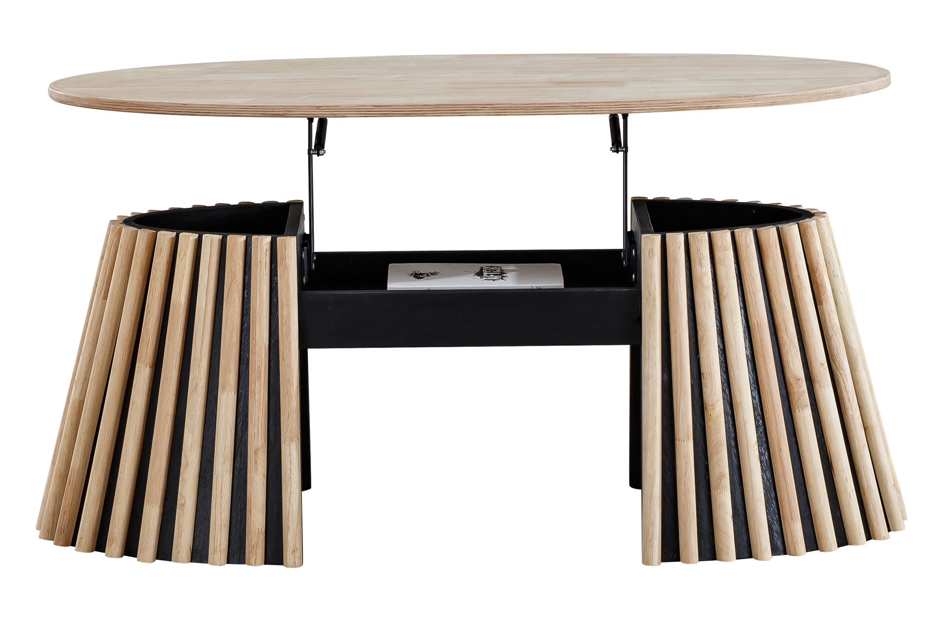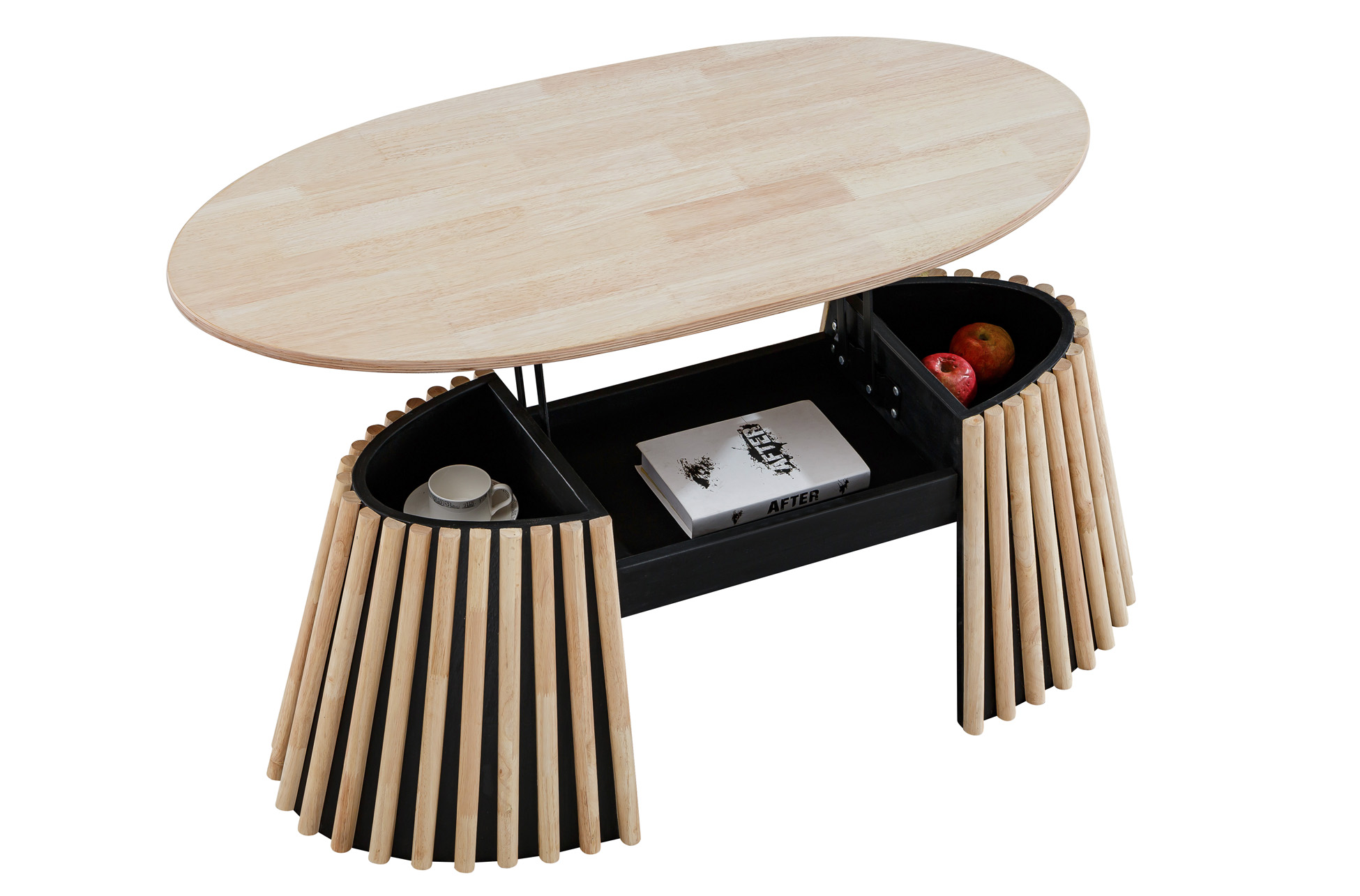 La tapa elevable permite transformar la mesa de centro en una superficie cómoda para trabajar, comer o utilizar dispositivos, elevándose de 45,5 a 60,5 cm. En su interior incorpora tres cajones, perfectos para mantener el espacio organizado guardando objetos pequeños, mandos, revistas o accesorios.