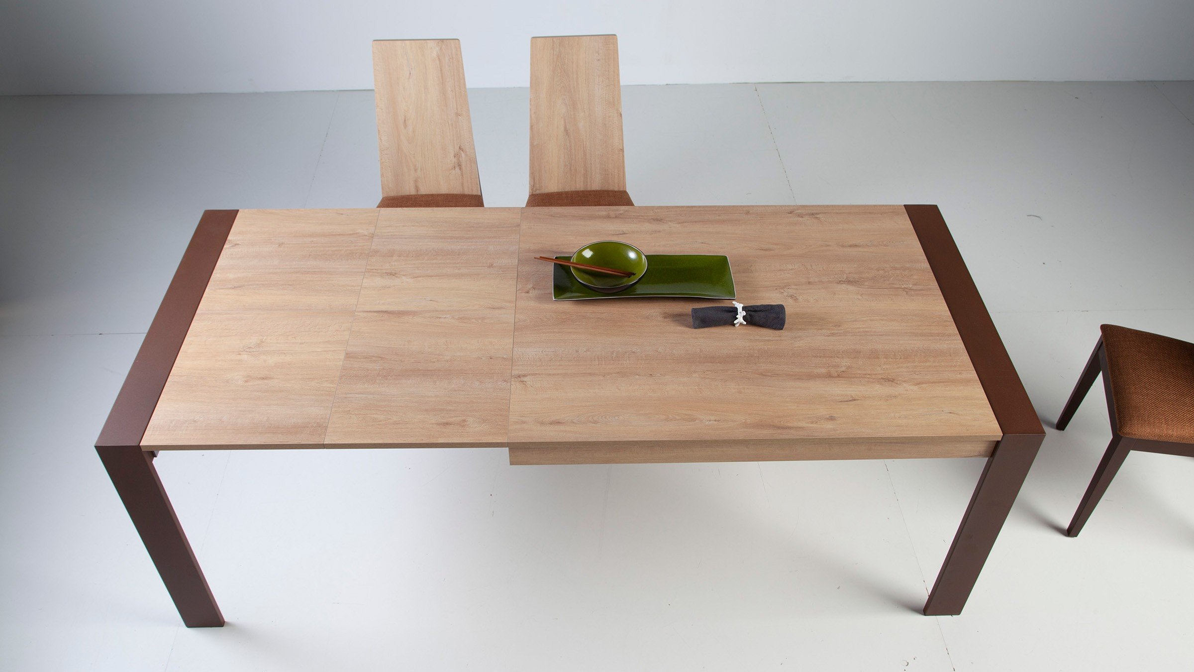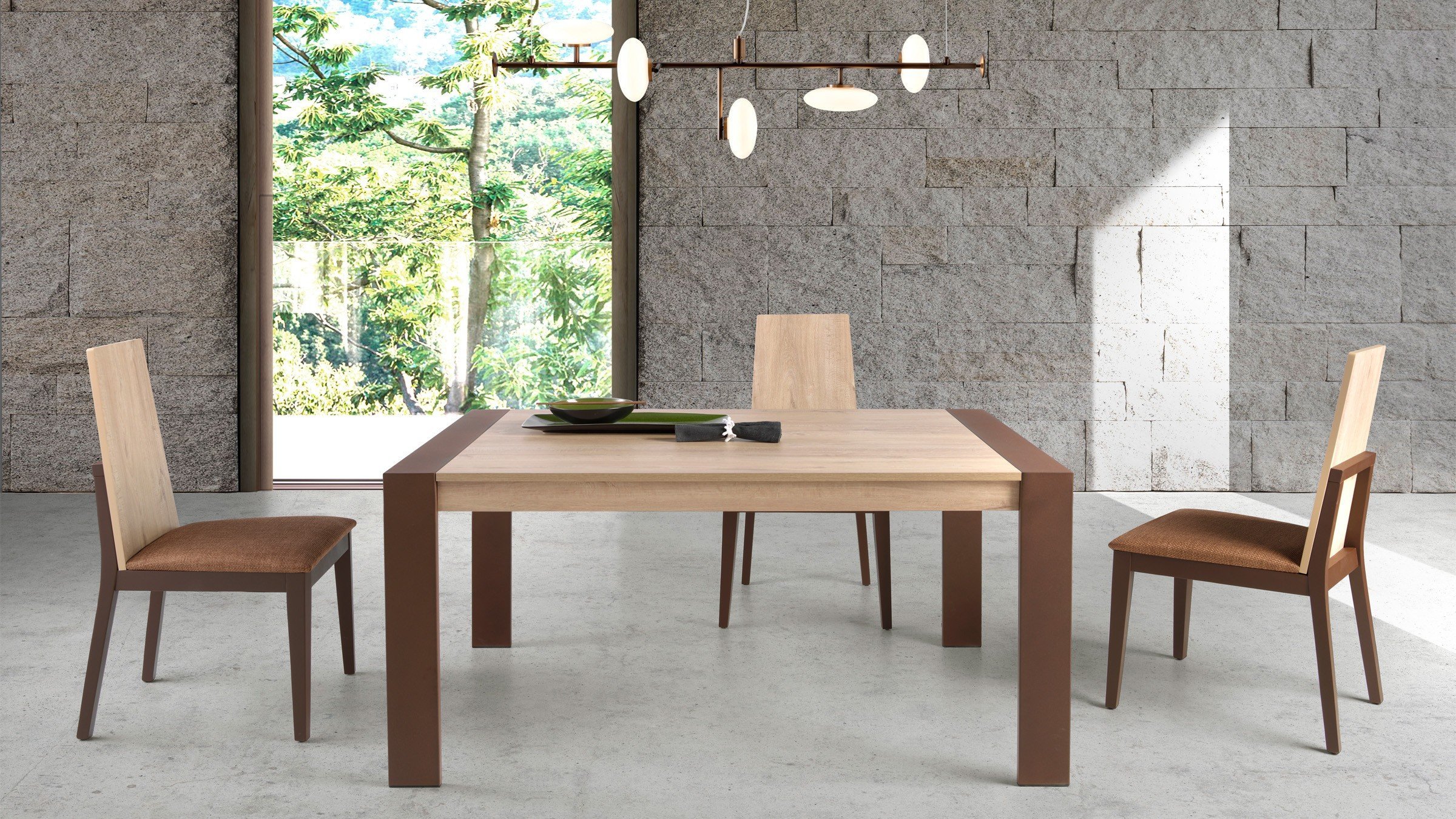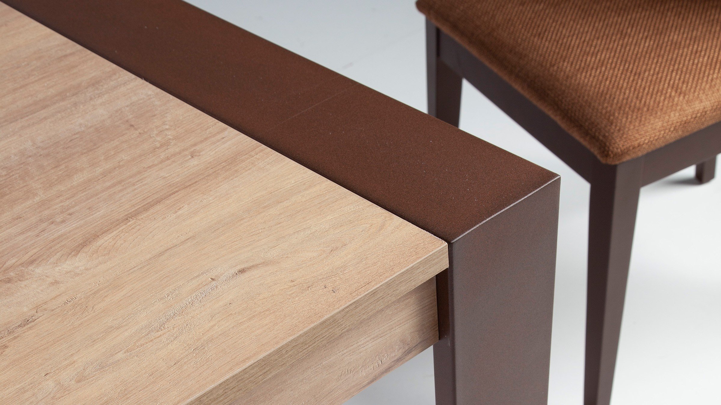 La mesa de comedor extensible rectangular  de apertura lateral, es una solución práctica y elegante para hogares que buscan versatilidad sin renunciar al diseño. Combina patas de metal con imprimación epoxi, que garantizan estabilidad y resistencia, con una tapa de madera técnica laminada (MATEC) de alta durabilidad y fácil mantenimiento.