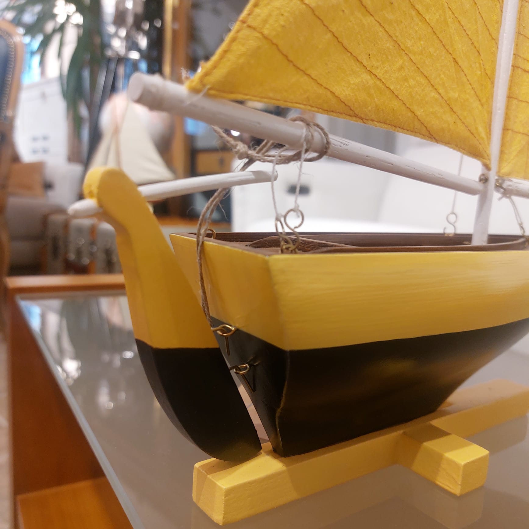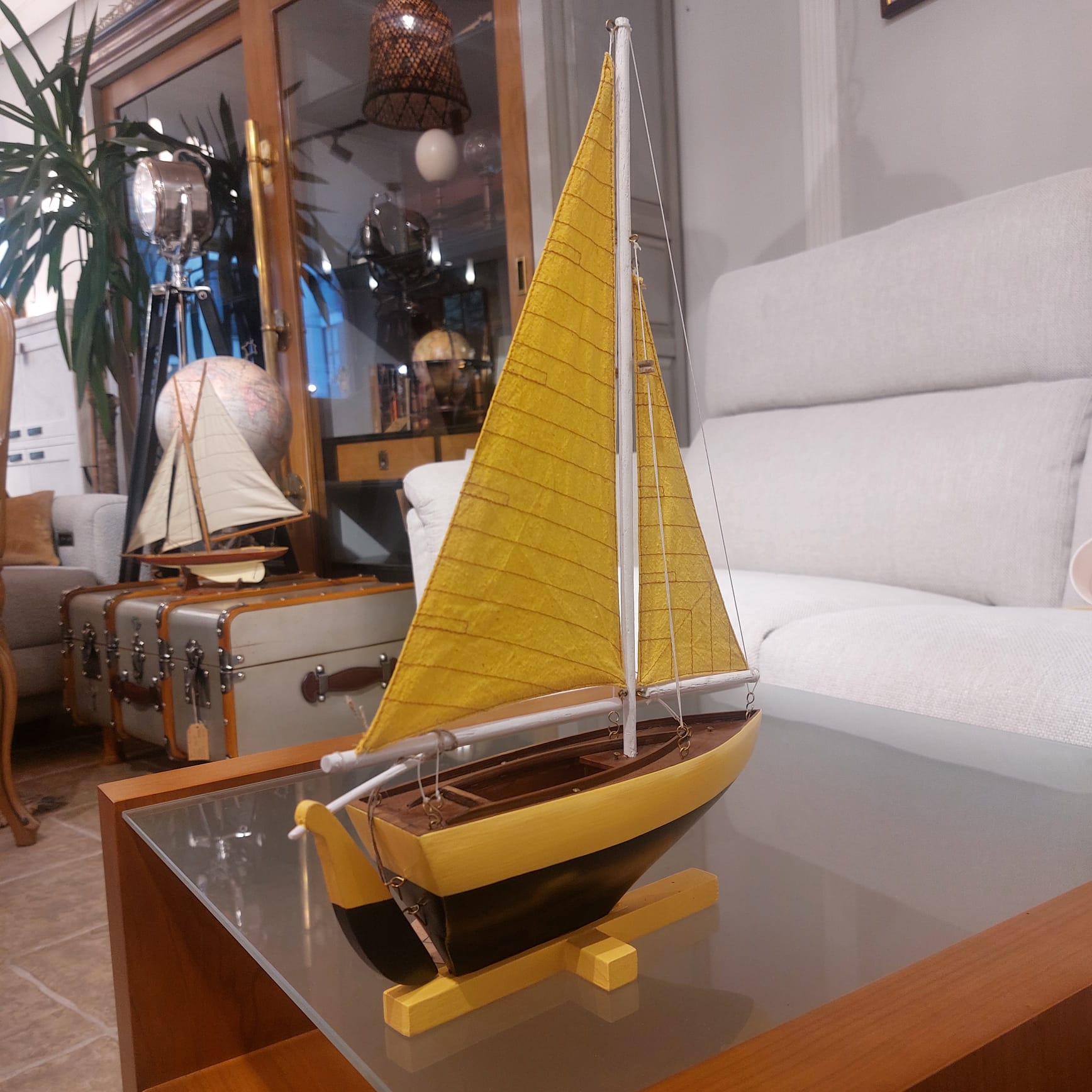 La colección Sunset Sailors presenta veleros de madera hechos a mano, acabados en colores frescos y luminosos que evocan la calma del atardecer en el puerto. Un detalle decorativo perfecto para aportar un toque náutico a cualquier espacio. Dimensiones: 26,1 × 7,1 × 40,5 cm.
